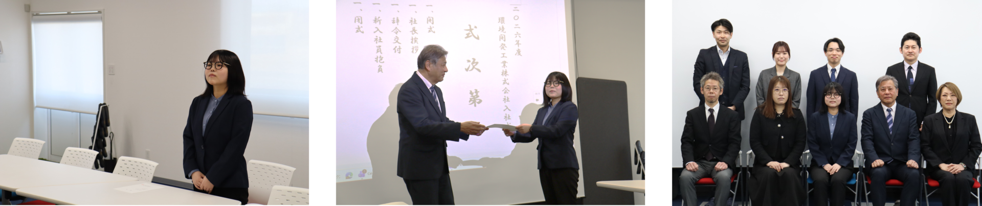 入社式当初は緊張した面持ちでしたが、時間の経過とともに徐々に表情も和らぎ、社会人としての第一歩を踏み出す姿が印象的でした。