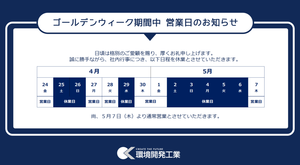 ゴールデンウィーク期間中の営業日のお知らせ